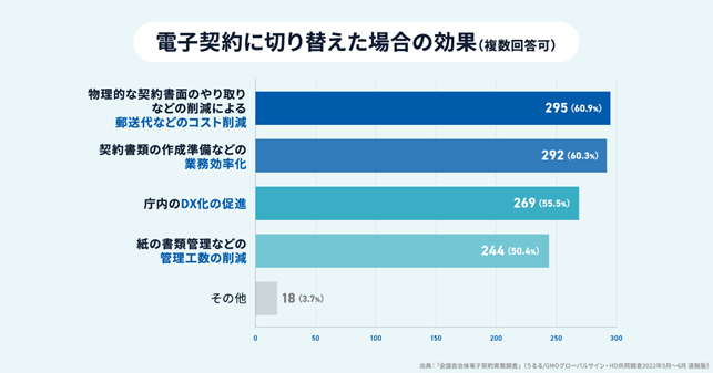 ・電子契約に切り替えることにより、過半数の自治体がコストや業務の手間の削減など業務効率化につながると想定していることが判明
