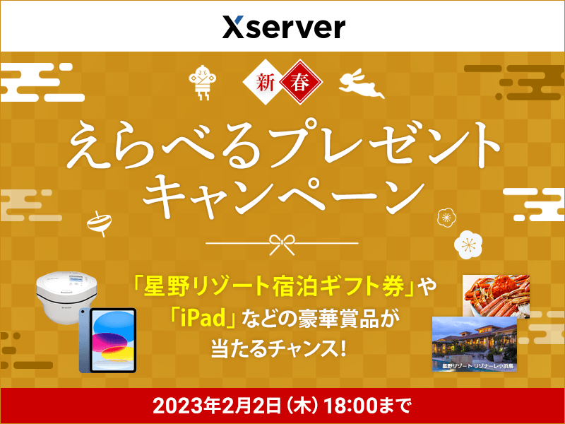 キャンペーン詳細はこちら : https://www.xserver.ne.jp/campaign/newyear2023/