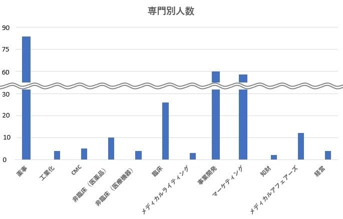 - 薬事のエキスパート数が5割を占め、薬事に強みがある。