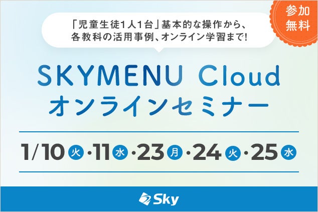 実際の授業を想定した活用シーンに合わせて「SKYMENU Cloud」の操作をご体験いただけるセミナーです。操作方法や活用場面などに関するご質問も承りますので、ぜひお気軽に「SKYMENU Cloud」をご体験ください。