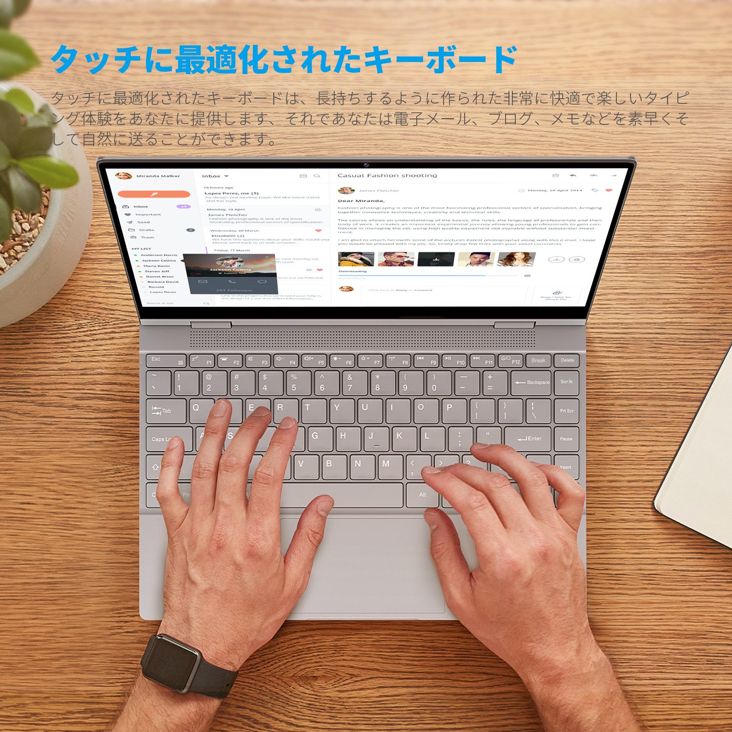 【13.3インチ大画面+1920x1080IPS】広視野角、高輝度のIPS液晶パネルを採用。フルHDタッチスクリーンは、フルラミネーションテクノロジーを超狭ベゼルを備えた低反射IPSディスプレイを備えています。屋内でも屋外でも、映像や文字が見やすく、読書や映画鑑賞がどこでも快適に楽しむことができます。