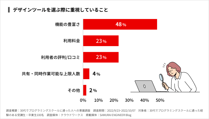 [4]デザインツールを選ぶ際には「機能の豊富さ」を重視している人が48%