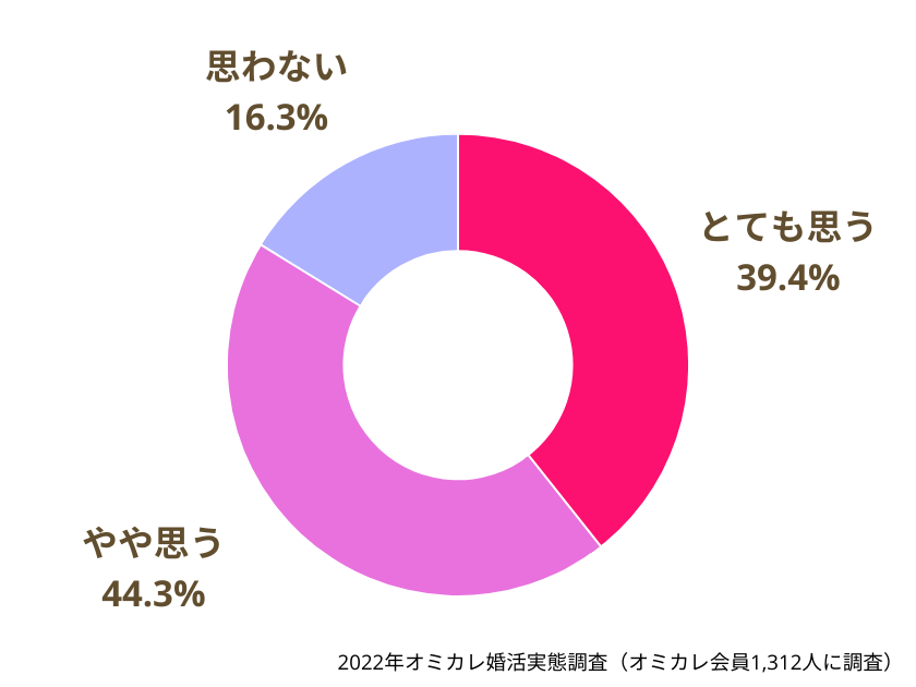 “とても思う“39.4%・“やや思う“44.3%。今回のアンケートでは83.7%もの人が“普段より積極的に素敵な出会いを見つけたい!“と回答しました。