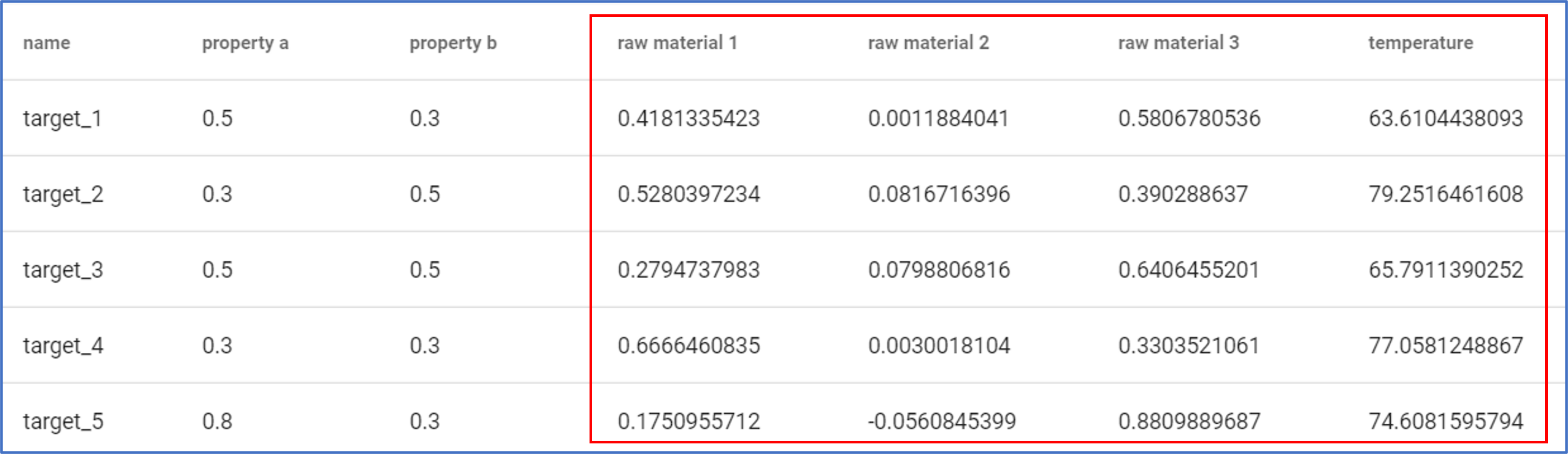 新規材料開発では、耐久性や柔軟性など様々な項目の目標性能を同時に満たすことが求められます。そこで通常ターゲットの項目ごとに最適な機械学習モデルを検討し、各項目での予測結果を掛け合わせて、全ての項目で目標性能を満たす作製条件を導きます。一方本機能では、検討すべき複数のターゲット項目のそれぞれの関係性を考慮しながら纏めて一つの機械学習モデルで簡便に最終的な作製条件を予測することができます。
