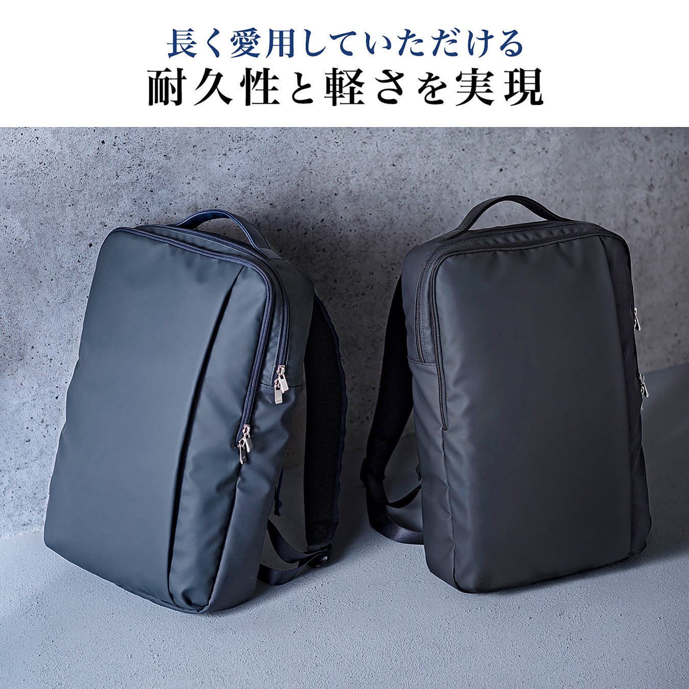 本製品は、毎日の通勤や仕事に安心して使える、耐久性と耐水性に優れた日本製の薄型ビジネスリュックです。