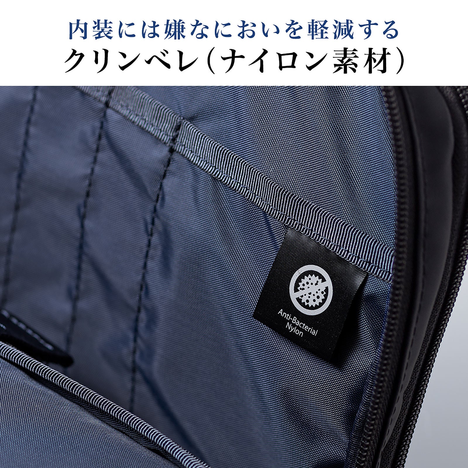 内装には抗菌・防臭効果のあるクリンベレを使用しており、バッグ内を清潔に保ちます。