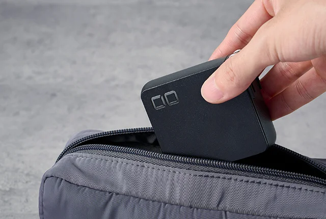 ラウンドとエッジを組み合わせることで、デバイスとの相性を保ちながら、手に持ちやすいデザインに。ポート部分にはCIOの表現する「未来感」を表すコーポレートカラーのCIOパープルをアクセントに。側面にはCIOのロゴをアルミプレートで配置することで、高級感を演出しました。