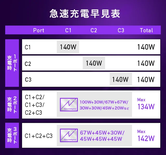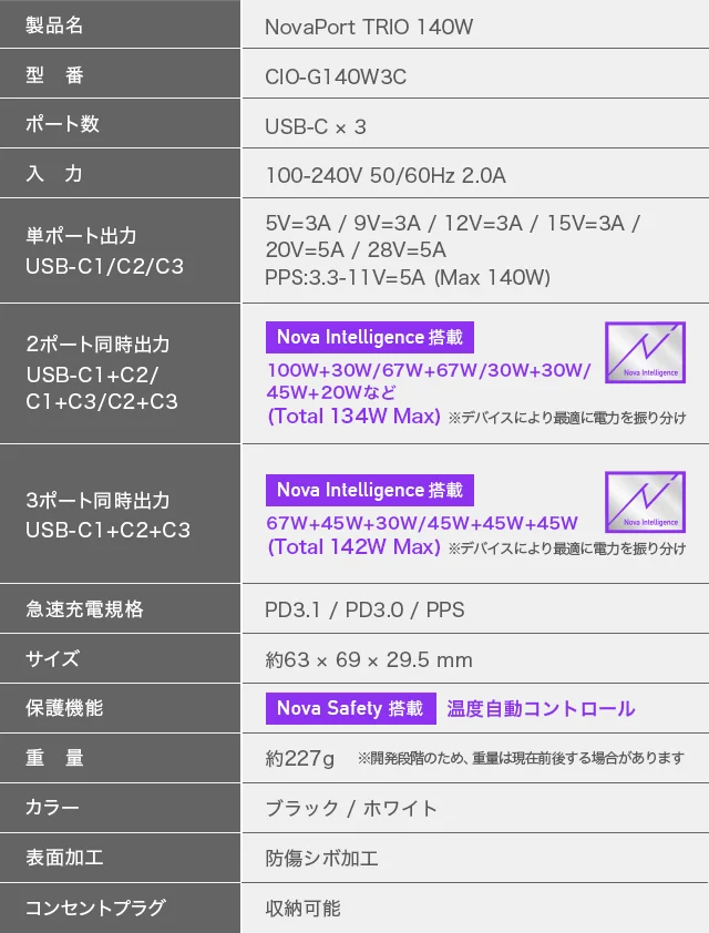 - 140W急速充電器『NovaPort TRIO 140W』の製品仕様