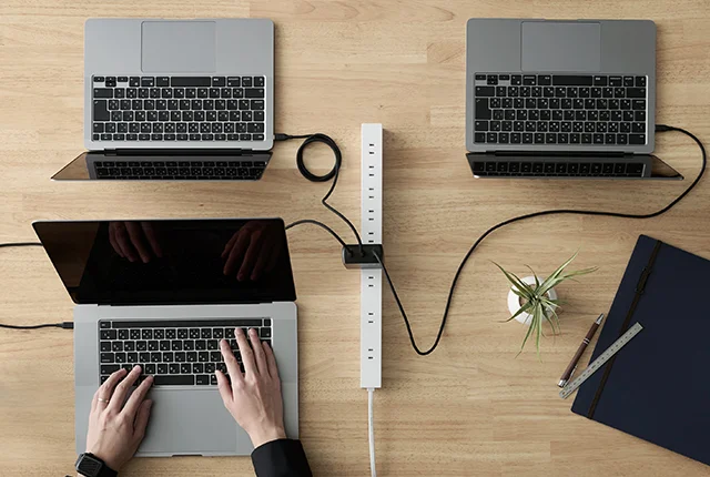 『NovaPort TRIO 140W』はUSB Type-Cポートを3つ備えており、ノートPCの3台同時充電も可能です。どのポートに刺してもデバイスに合わせて、最適な出力で充電可能で出張や旅行先等、オフィスやコワーキングスペース等、あらゆる場所や環境に自由自在に適応します