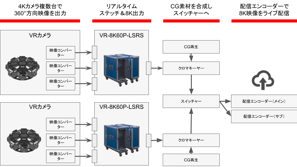 ・8K60PリアルタイムステッチVRライブストリーミング配信システム