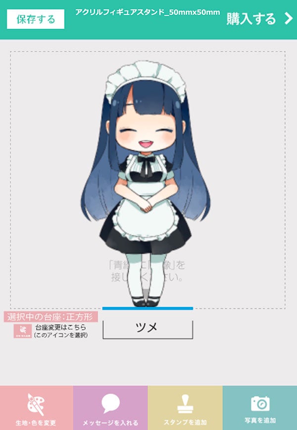 下記URLをクリックすると、アクスタ(アクリルスタンド50×50mm)作りが体験できます。デザイン作成は無料です。もしお気に入りのデザインができればもちろん購入可能!