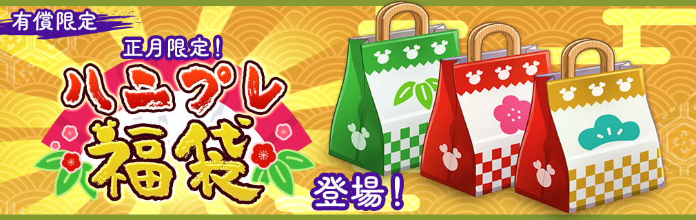ハニプレ内の交換所にて、有償ハニーダイヤでお得に交換できるキャラ応援や進化に必要なアイテムがセットになった「ハニプレ福袋(梅/竹/梅)」が登場いたします。
