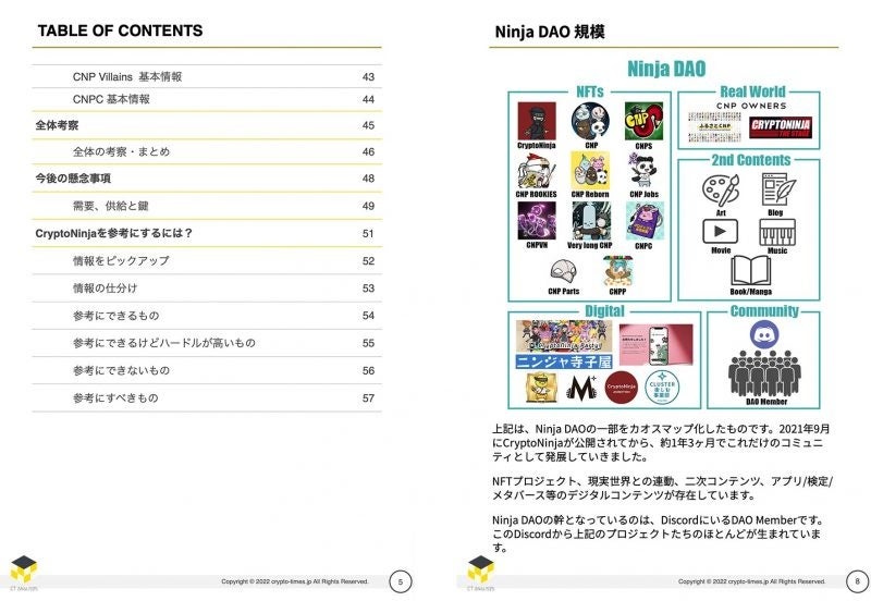 レポートは、Ninja DAOの全体概要からCryptoNinjaの経緯、CNPの経緯、成功事例の考察などがメイントピックとなっております。