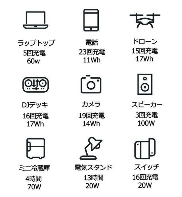 - すべてのデバイスに対応するアウトドア電源