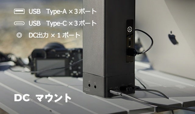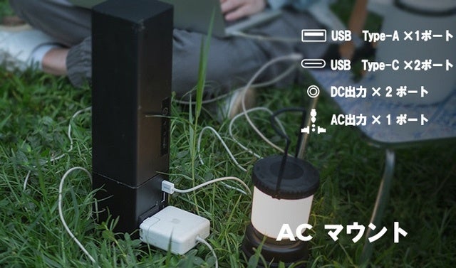 また、バッテリー本体に内蔵されている出力ポートが足りないときはACマウントやDCマウントを使う事で多くの機器に電力を供給できます。