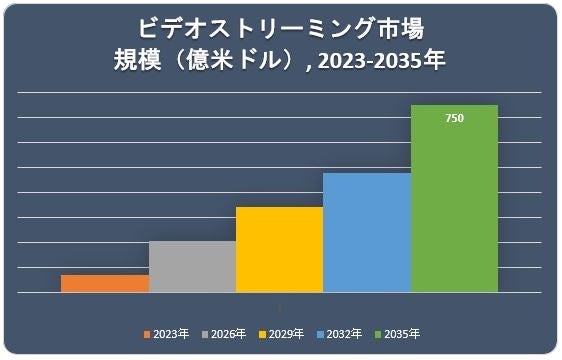 世界のビデオストリーミング市場は、2022 年に約 700 億米ドルと評価されました。この市場は 、約25% の CAGR で、2035 年末までに 約7,500 億米ドルの収益を獲得します。