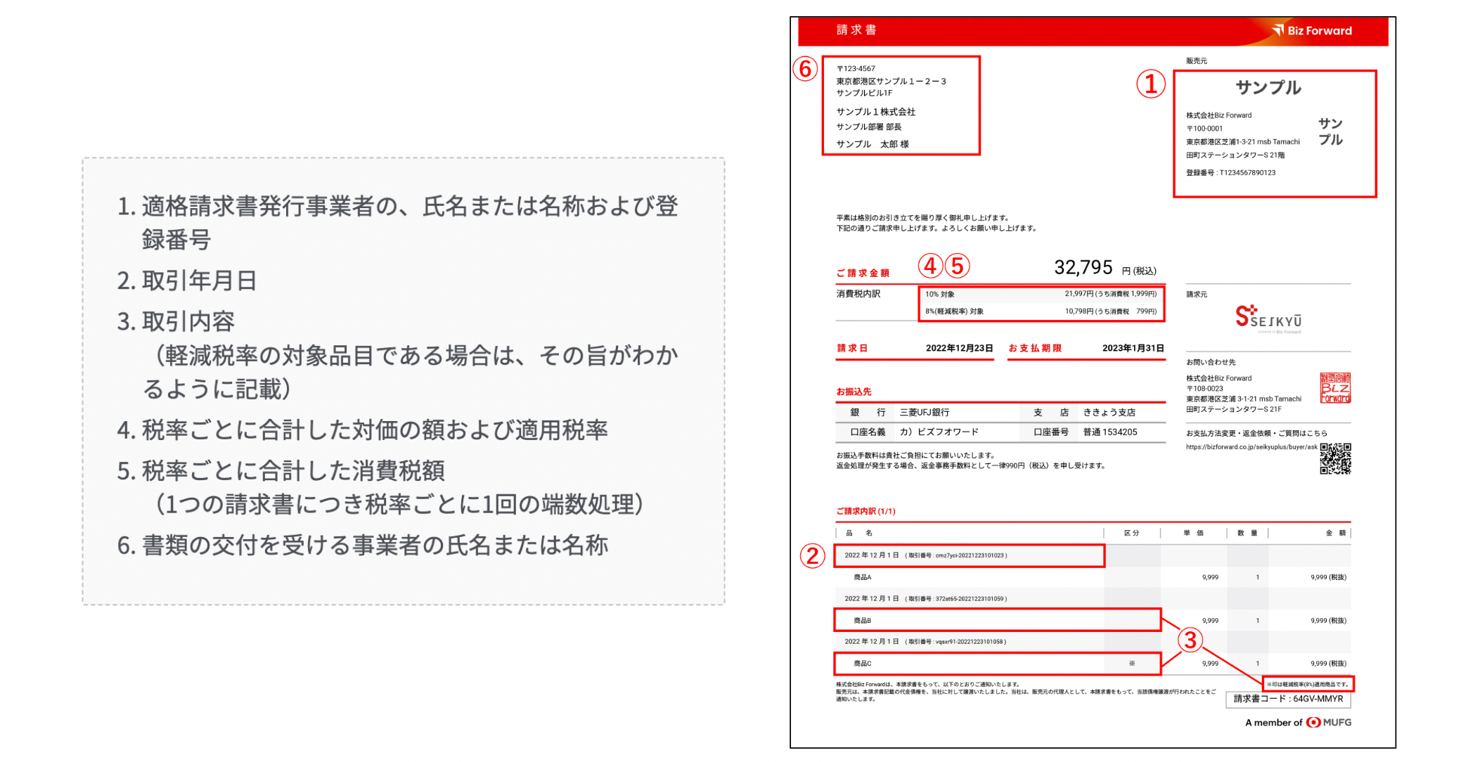 ①必須項目6項目を満たしたインボイスと適格返還請求書の発行が可能になりました。