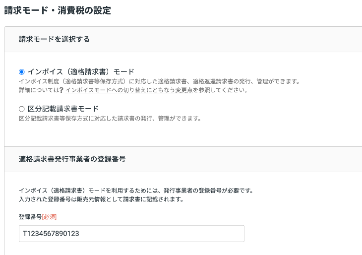 ②「インボイス(適格請求書)モード」と「区分記載請求書モード」の切り替えが可能になりました。
