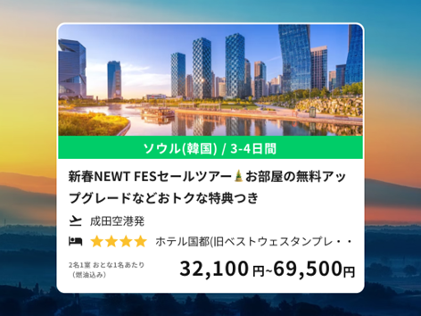 【新春NEWT FES セールツアー】注目の韓国!お部屋の無料アップグレードなどおトクな特典つき