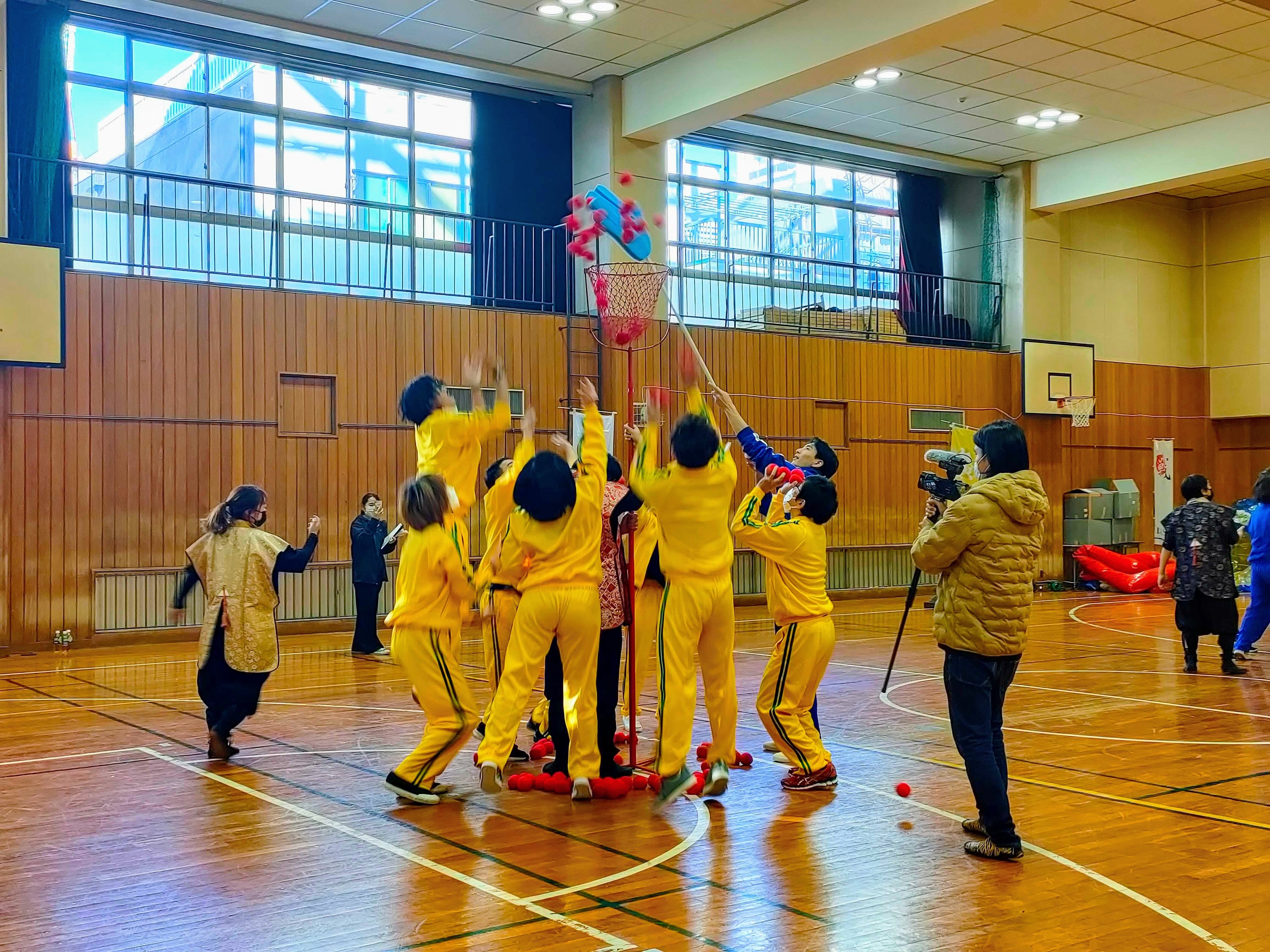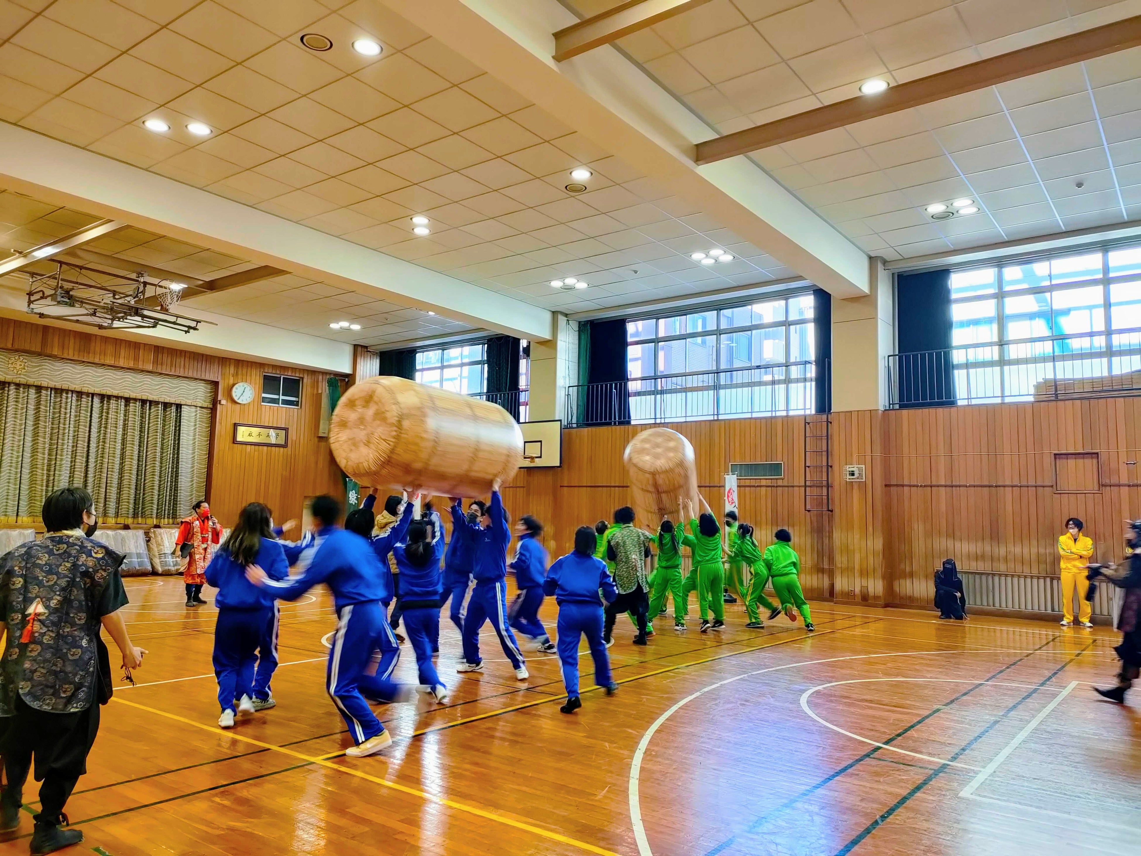 通常の縄跳びに加え、「小判」を多く持っていたチームが勝利します。