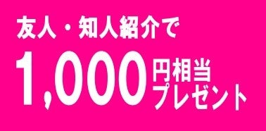 来店エントリー参加者がご家族様・ご友人を招待(紹介)頂けますと、特典として1,000円相当プレゼント!(来店エントリー特典増額)