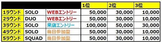 全5ラウンドで行われ、各100名定員で合計500名まで参加能です。