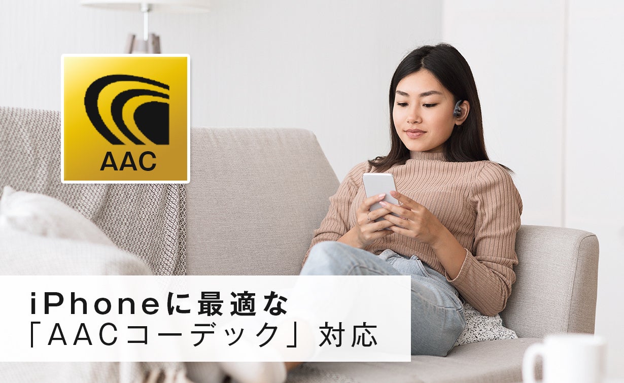 iphoneに最適なコーデックAACに対応し、高音質を低遅延で、高いクオリティの音楽をお楽しみいただけます。