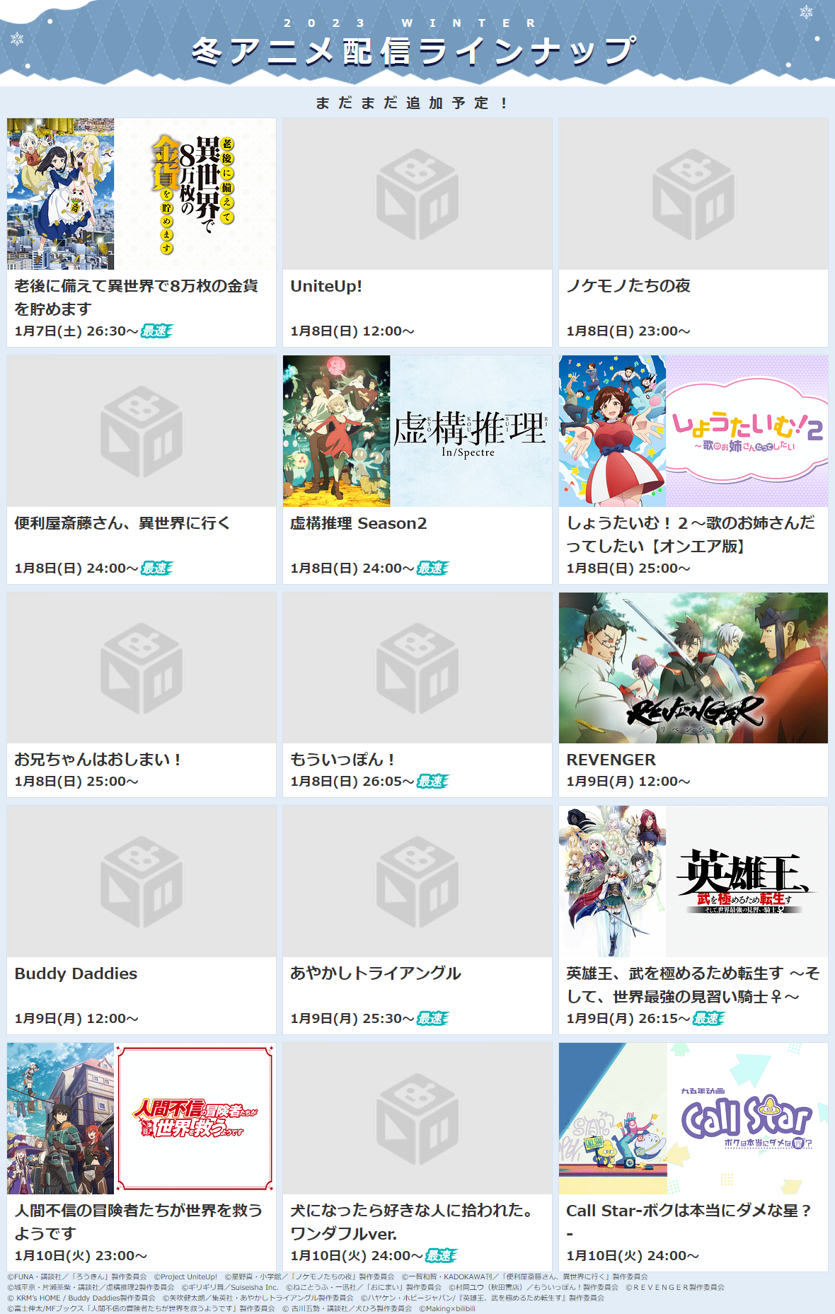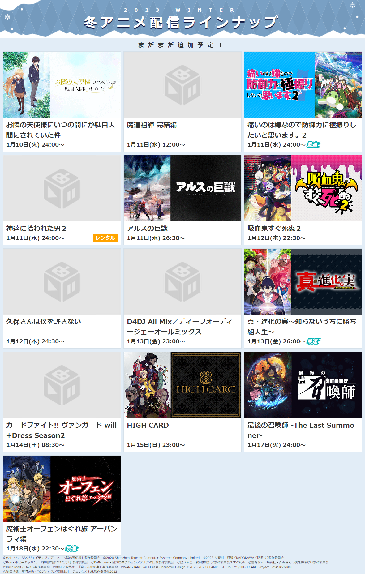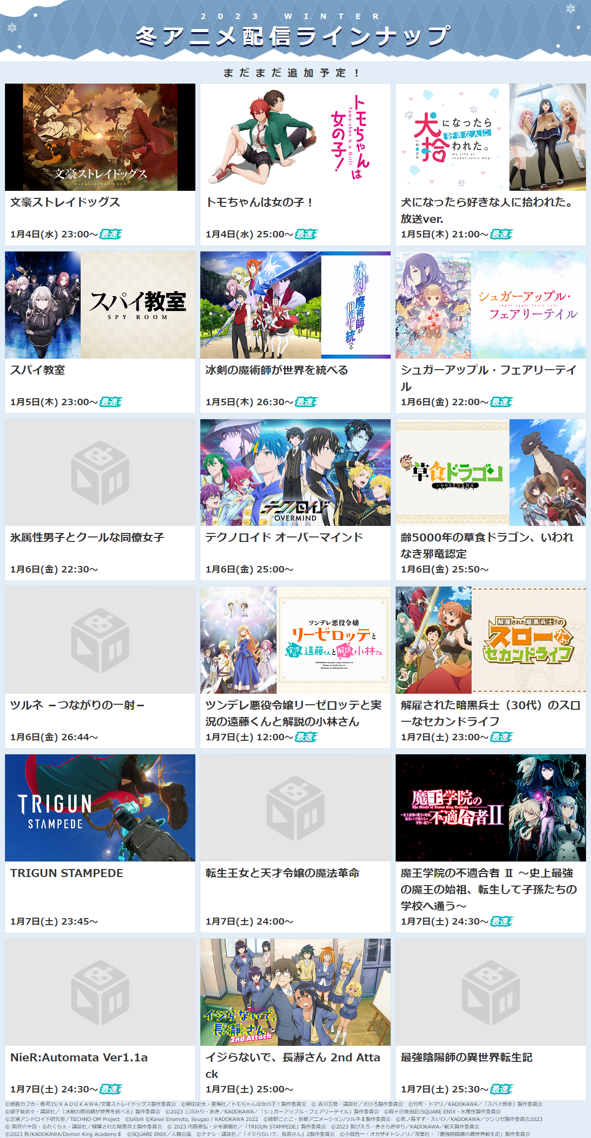 ※詳細は次項目「■2023冬アニメ・配信決定一覧」 及び ラインナップページをご確認ください