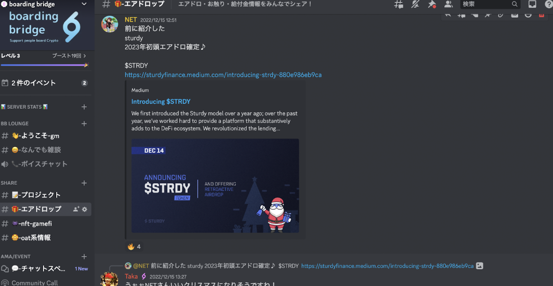 Web3.0ジャンルのDeFi、NFTなどの注目プロジェクト、リサーチ、エアドロップに関する情報共有を行う場として、参加者が10,000人を超えるコミュニティへと成長しました。