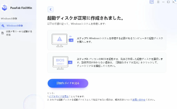 パソコンの起動に問題がある場合、対応してくれる専門ツールを使うという手段があります。今回はPassFab FixUWinというツールをご紹介します。このツールの使い方は以下の通りです。