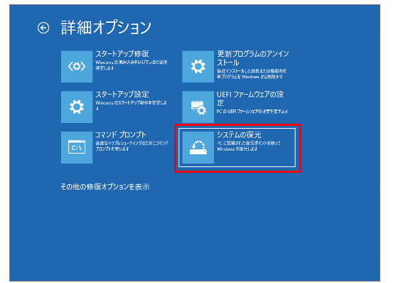 Step4:「詳細オプション」へ進み、「システムの復元」を選択します。