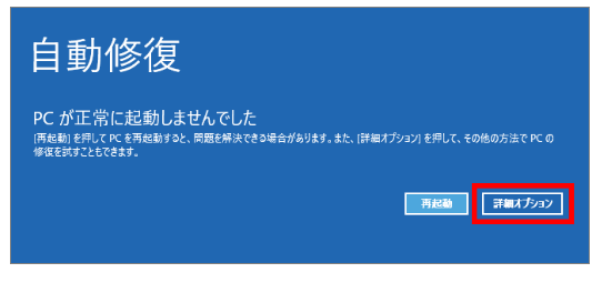 Step2:以下の画面が表示されたら「詳細オプション」を選択します。