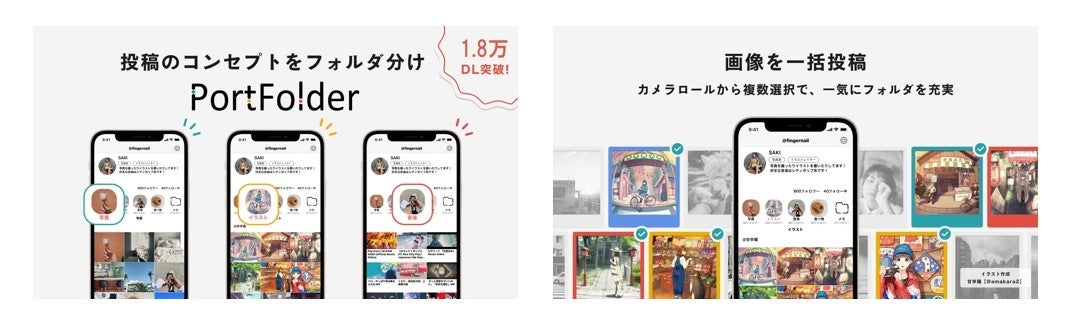 フォルダに分けて投稿をすることでプライベートと作品の投稿を分けたり作品のコンセプトを分けて投稿ができるSNS型のポートフォリオサービスです。