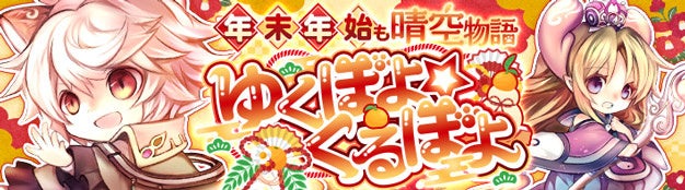 本日より期間限定イベント「年末年始も晴空物語 ゆくぽよ☆くるぽよ」を開催しました。イベント期間中は年末年始特別ログインボーナスアイテムが毎日もらえるほか、モンスター討伐時の獲得経験値とアイテムドロップ確率が15%増加します。レベル55を目指してモンスターを狩って狩って狩りまくりましょう。