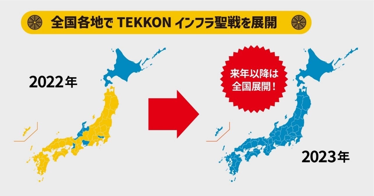 市民の力で全国総点検を目指す「インフラ聖戦」は、社会貢献型Web3アプリ「TEKKON」の2022年10月17日一般公開から2022年12月末までの約2か月半で、8か所(愛知県岡崎市、北海道倶知安町、北陸3県3都市(金沢、富山、福井)東京都渋谷区、大阪府大阪市)でエリアを絞って開催、コンプリートしてきました。来年以降は、開催頻度を高めて開催、来夏には、全国のマンホールの蓋約1500万基の半分相当、750万基コンプ達成を目指します。