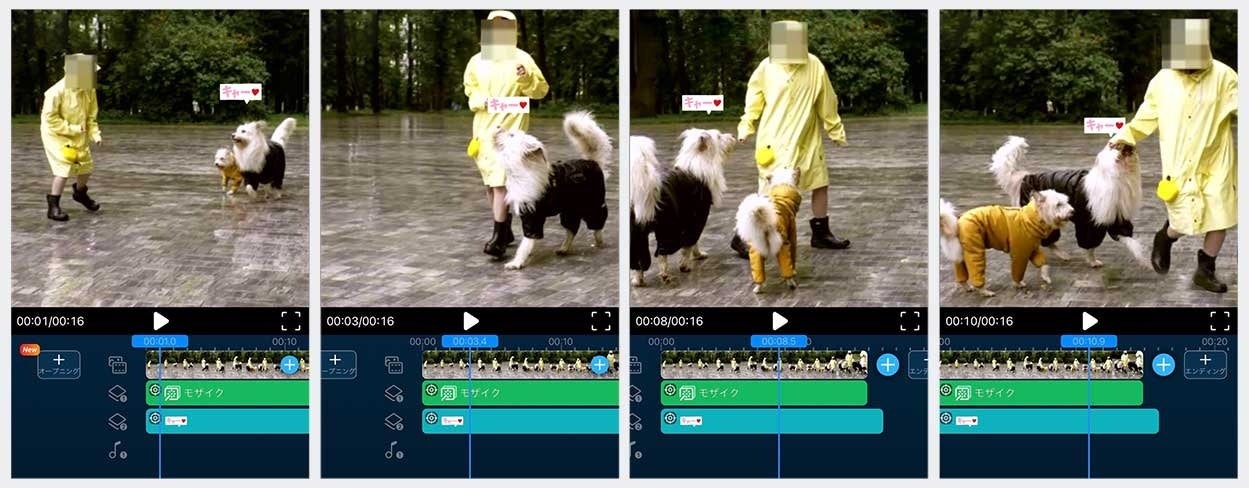 人や動物など動くオブジェクトにモザイクやステッカー、またテキストなどを追従できる機能です。