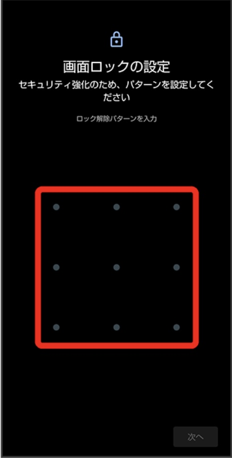 Step2:画面ロックの選択画面で、「パターン」を選択します。