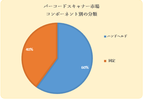 コンポーネント セグメントのサブカテゴリは、ハンドヘルドと固定です。 このうち、ハンドヘルドサブカテゴリが最大のシェアを占めると予想されます。 コンポーネントセグメントでのシェアが大きい理由は、使いやすさです。 さまざまな起業家が、固定式のバーコード スキャナーよりもハンドヘルド バーコード スキャナーを好んでいます。