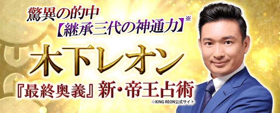 本サイトは、自分自身を知り、愛を知り、運を掴む「木下レオン」の最終奥義『新・帝王占術』による鑑定サイトです。生まれながらにあなたをお守りしている神様「帝王サイン」を紐解き、あなたの基本性質や運勢、好きなあの人との相性や恋の行方を明らかにしていきます。また、帝王カードでは、あなたを「今」見守り、メッセージを送ってくださっている神様を明らかにしていき、その言葉をお伝えしていきます。今あなたがどんな状況下にあるのか、何を知り、意識すべきなのか、全てを明らかにしていきます。