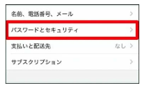 Step2:「パスワードとセキュリティ」を選択し、「パスワードの変更」をタップします。