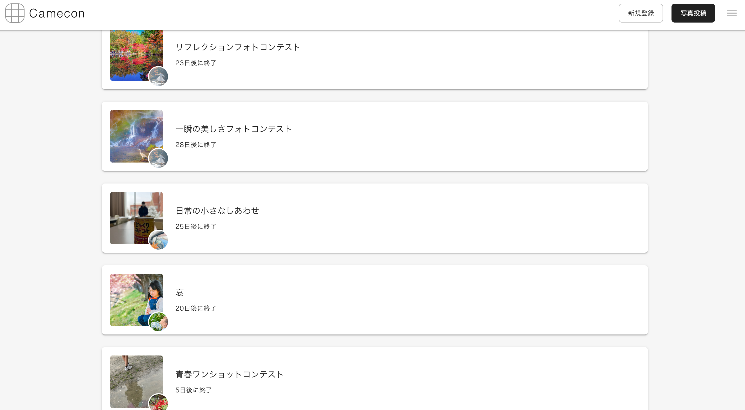 Camecon(カメコン)では様々なテーマのフォトコンテストを開催中です。(上記以外のテーマも開催中)