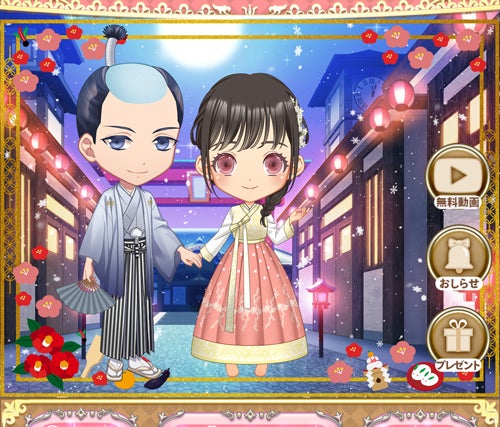 今回は⼀回ストーリーをクリアすると…お正⽉らしさ溢れる素敵な背景がもらえちゃう♪貴⼥のマイページに登録して彼と⼀緒により素敵なお正⽉を☆