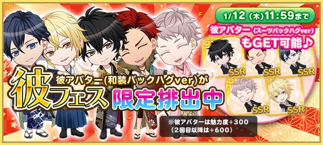 ①お正月彼フェスで、「顎クイポーズ」の和装姿SDアバターが新登場♪