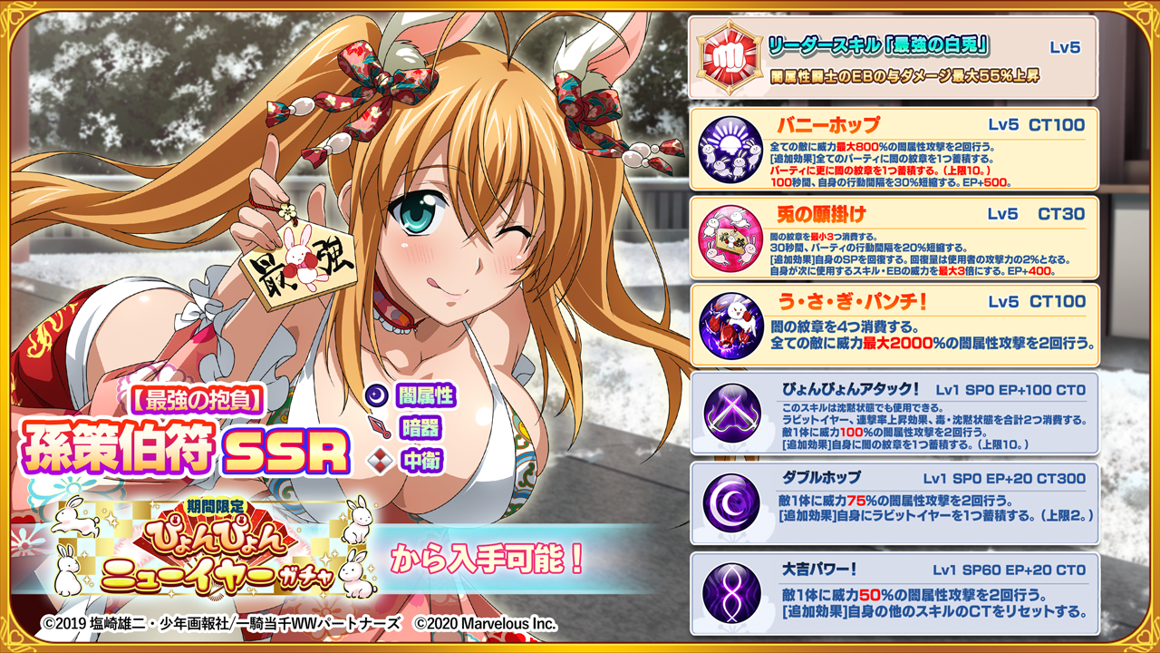 本日開始の「ぴょんぴょんニューイヤーガチャVol.1」では、新たに「【最強の抱負】孫策伯符」(CV: 浅野真澄 )」が登場。
