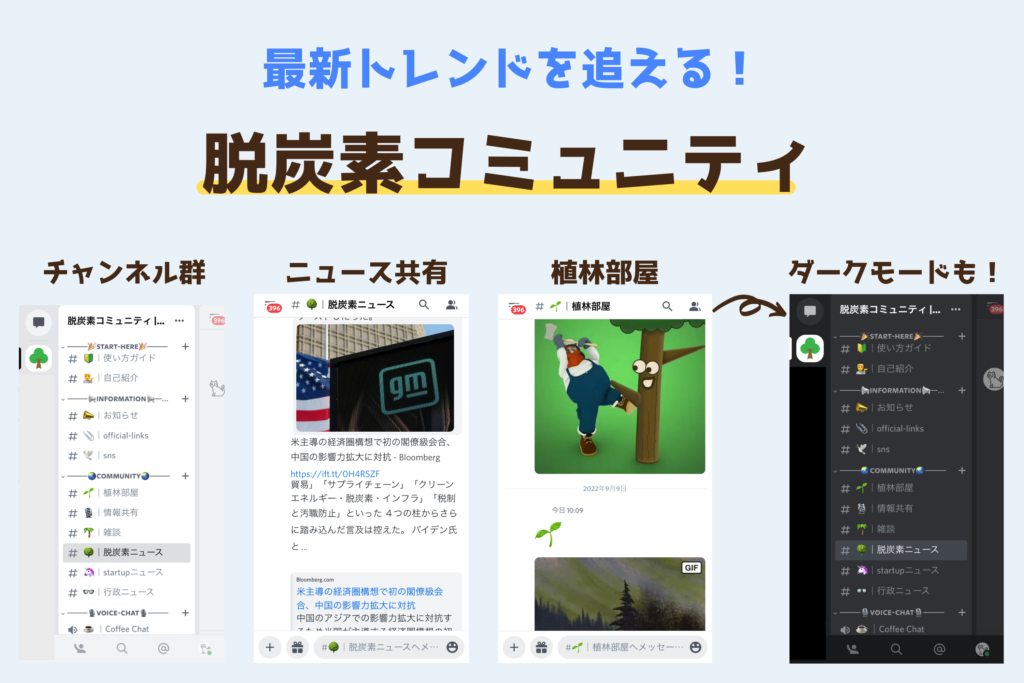 運営メンバーを中心にニュースのシェアを行うと共に、脱炭素に関連するニュースを自動でピックアップし、ご紹介するチャンネルがございます。