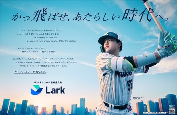 Larkは、2023年がすべての挑戦者にとって更なる飛躍の年となるよう、驚くべき成長を遂げながら歴史的な記録を次々と創り出していくプロ野球選手・村上宗隆選手をアンバサダーに起用し、元旦の日本経済新聞にて30段全面広告を掲載、すべての挑戦者にNEW YEARメッセージを発信してまいります。