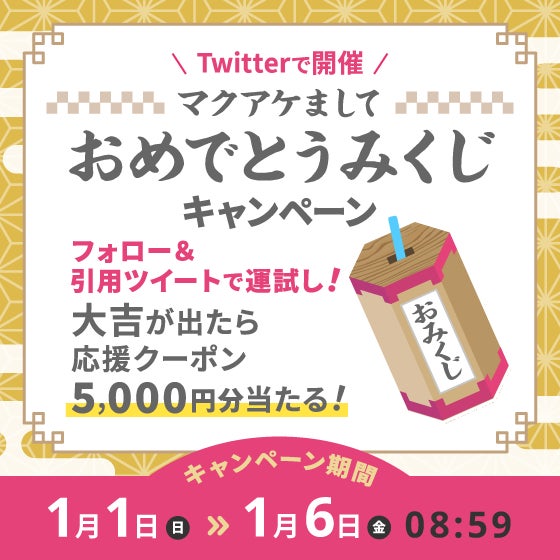 また、本キャンペーンに加えて、Twitterを活用して5,000円分の応援クーポンが合計25名様に当たる「マクアケましておめでとうみくじキャンペーン」を同時開催いたします