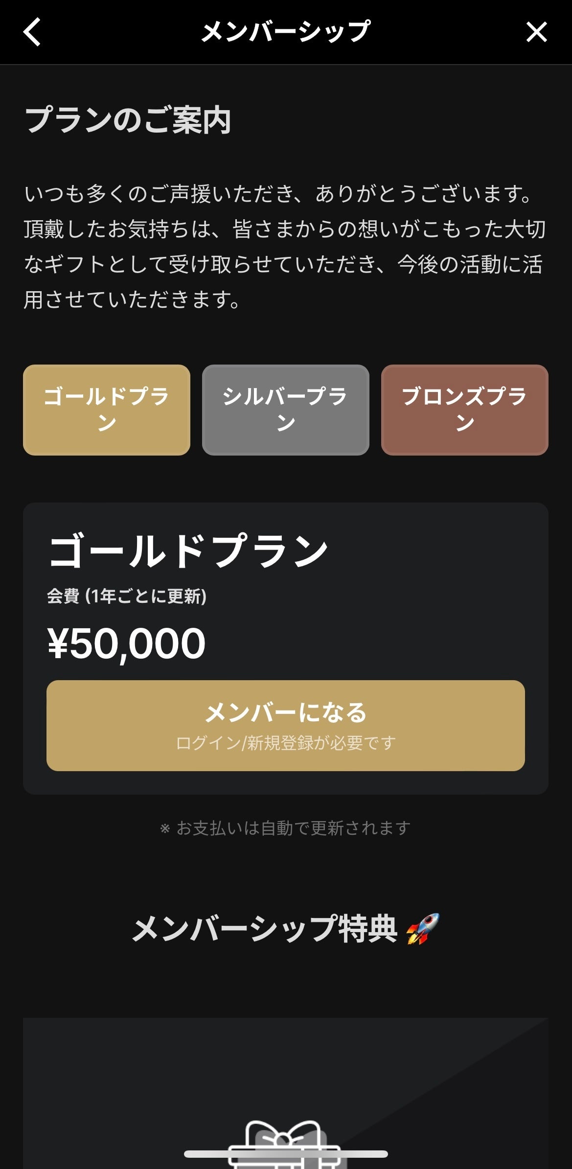 メンバーシップ機能からファンクラブ会員になって頂くと、チームから特別なグッズをお届けします!