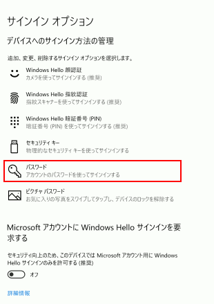 Step1:「設定」の「アカウント」→「サインインオプション」→「パスワード」へ進みます。