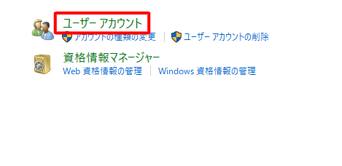 Step1:「コントロールパネル」から「ユーザーアカウント」へ進みます。